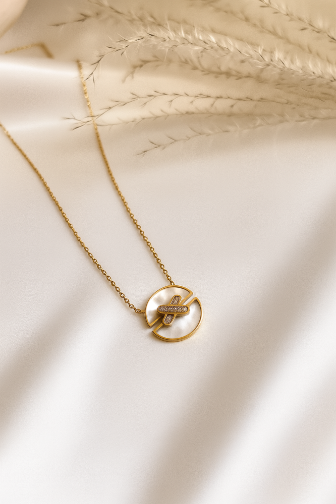سلسال مستوحى من تصميم هارموني الأيقوني لعلامة شوميه، يجمع بين الأناقة والتوازن بتصميم مستدير راقٍ. يضفي الصدف الصناعي لمسة من البريق الساحر، ليعكس الضوء بأسلوب جذاب. قطعة فاخرة تمنحك تألقًا فريدًا، مثالية للإطلالات العصرية والراقية