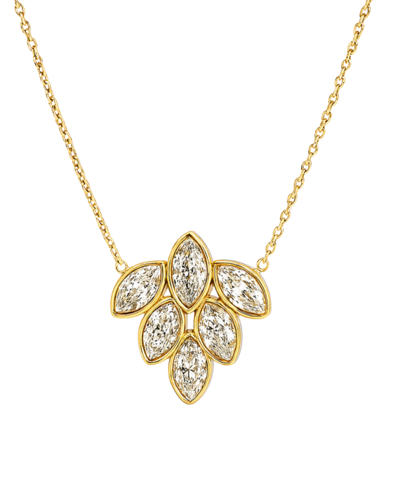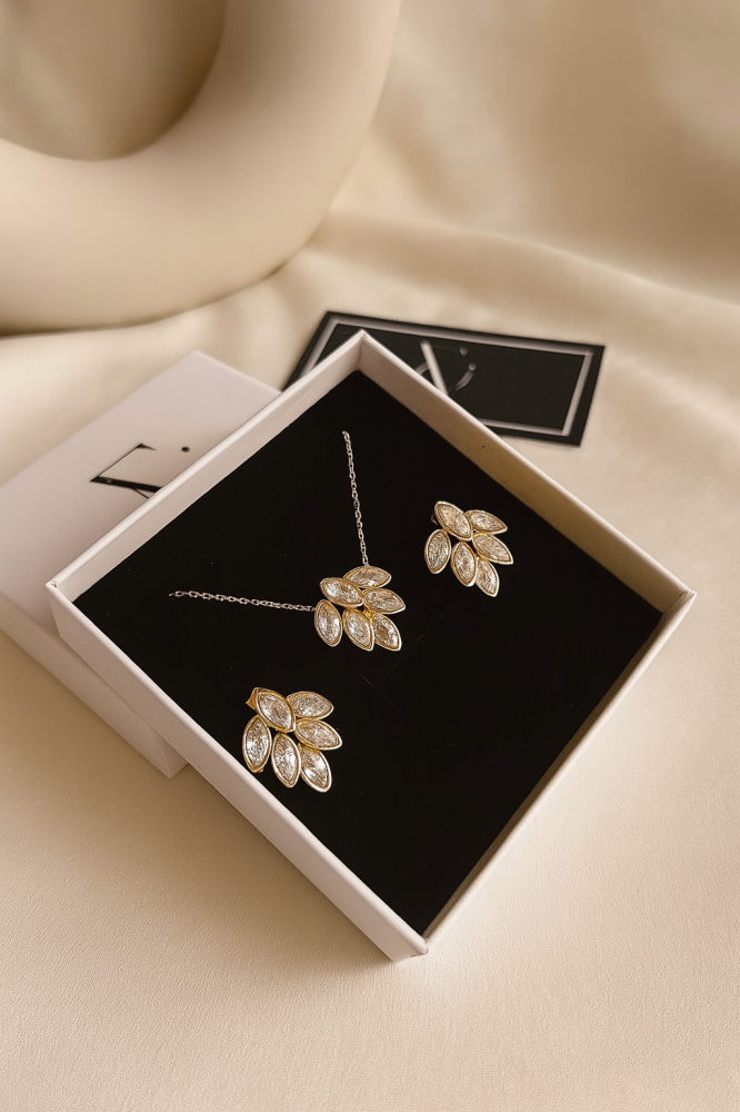 سلسال أنيق مستوحى من جمال ورقة القيقب، يتألق بتفاصيل دقيقة مرصعة بأحجار الزركون البراقة. تصميم يجمع بين الرقي والتألق، ليضفي لمسة طبيعية ساحرة على إطلالتك.