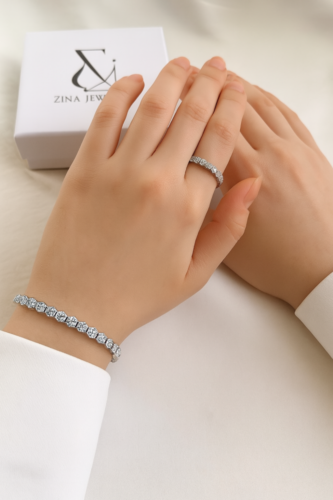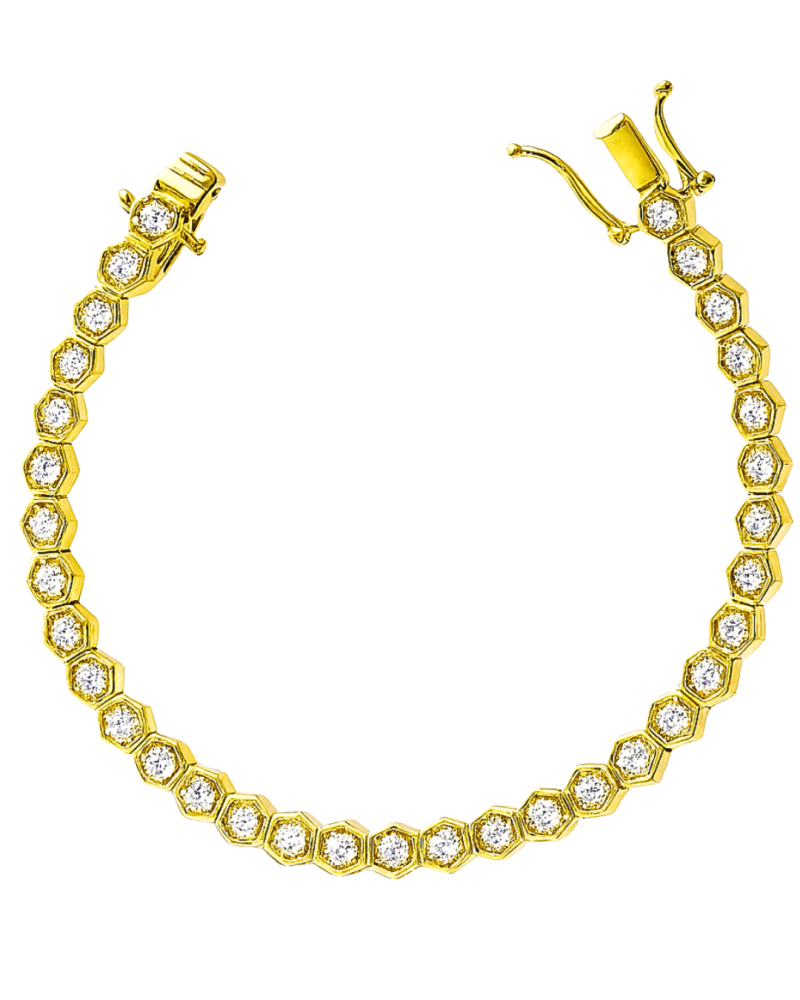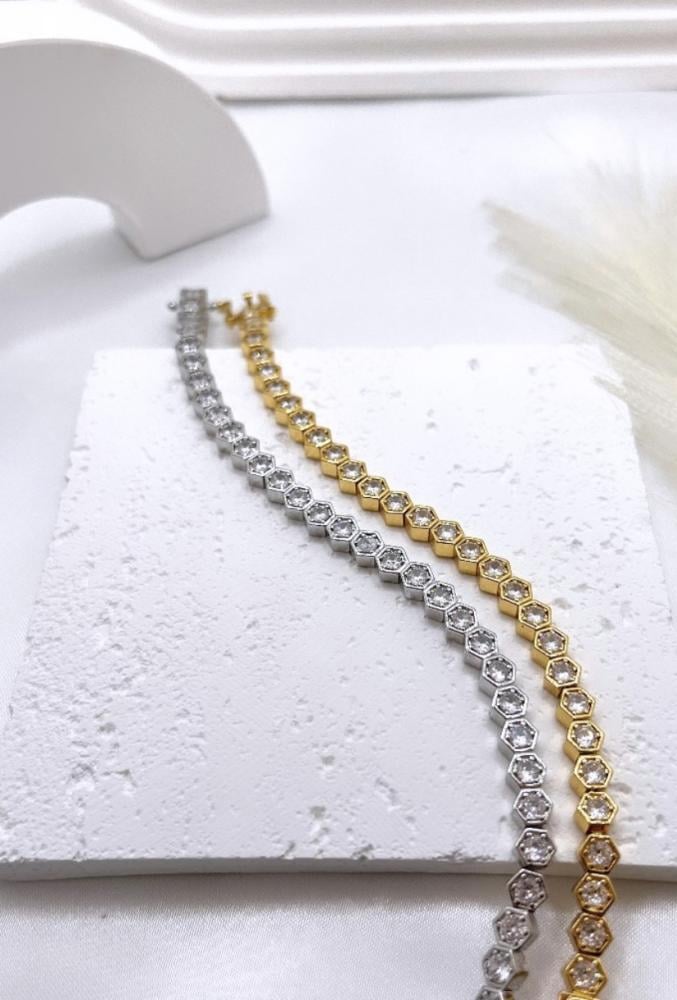 هذه الأسوارة المذهلة مستوحاة من الجمال الطبيعي لخلايا النحل، تجمع بين التصميم الهندسي الحديث والتفاصيل الطبيعية الرائعة. مصنوعة بدقة من الفولاذ المقاوم للصدأ، وتغطيها طبقة لامعة من الذهب عيار 18قيراط ، مما يمنحها بريقًا دافئًا ولمسة من الفخامة. التصميم على شكل خلايا نحل يعكس الهندسة الدقيقة والتناسق الموجود في الطبيعة، مما يجعلها قطعة فنية تضفي لمسة من الأناقة والحيوية على معصمك.